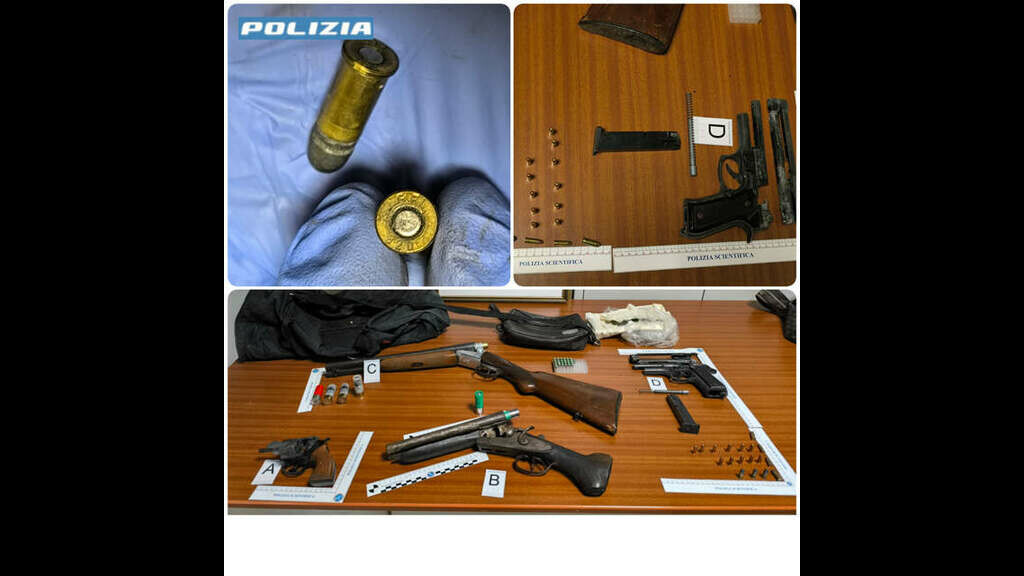 Nel locale gli agenti hanno rinvenuto due doppiette calibro 12, entrambe di provenienza furtiva e con canne mozze.