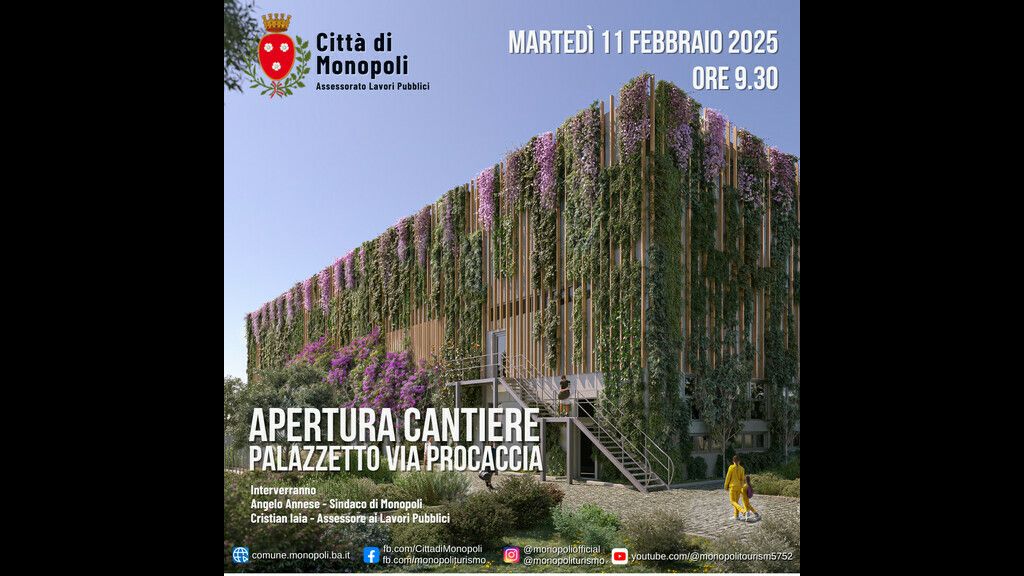 All’inaugurazione del cantiere interverranno il Sindaco di Monopoli Angelo Annese e l'Assessore ai Lavori Pubblici Cristian Iaia.
