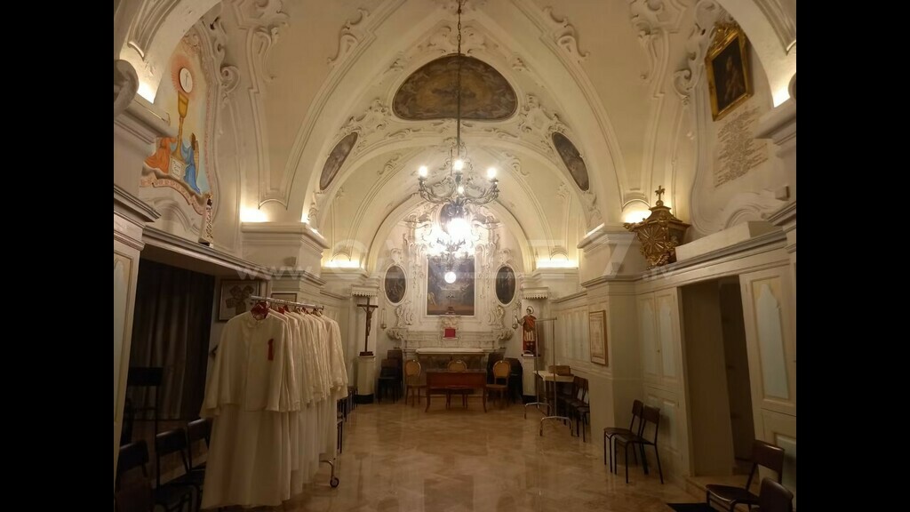 IL LUOGO - L'Oratorio del SS. Sacramento sorge contiguo alla Chiesa Concattedrale di Maria SS. della Madia, esattamente alle spalle del Cappellone del SS. Sacramento, ultimo sulla navata destra della citata Chiesa con accesso da via Molini, nei pressi di un fossato prospicente le antiche mura di recinzione della città.