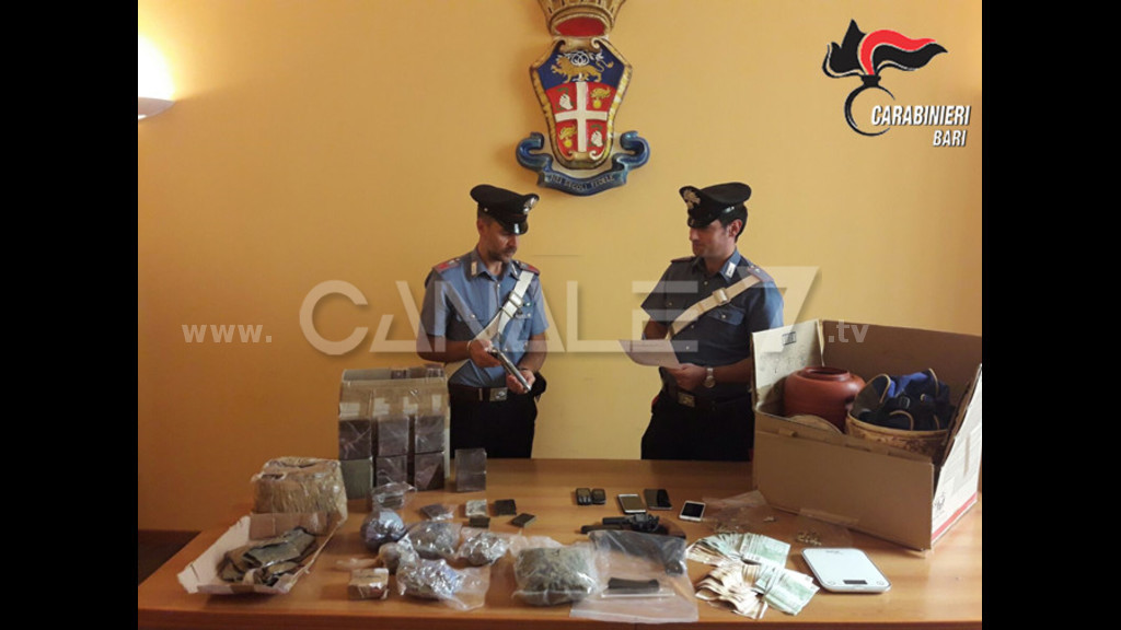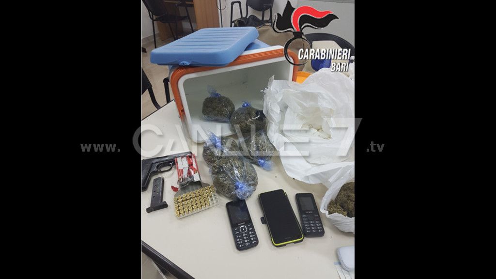 A Gioia del Colle, invece, i carabinieri della locale compagnia e della stazione di Putignano, hanno arrestato G. F. 35enne e P. G. 57enne, entrambi operai, solo il primo noto alle forze dell’ordine. I due sono stati infatti sorpresi all’interno di un box con una pistola cal.7,65 con matricola abrasa, con 52 cartucce stesso calibro. Il tutto occultato all’interno di borse, contenitori in plastica e zaini. Oltre alla droga non poteva mancare tutto il materiale per il confezionamento e la somma di 600 euro ritenuta il provento dell’illecita attitivà. Per i due si sono così aperte le porte del carcere di Bari, dovendo rispondere di detenzione ai fini di spaccio di sostanze stupefacenti e detenzione illegale di armi da sparo. Le armi e lo stupefacente in sequestro saranno inviati nei laboratori per le analisi della sezione investigazioni scientifiche del comando provinciale per le analisi del caso