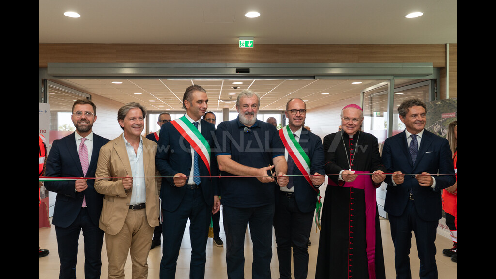 Il taglio del nastro segna l’avvio del trasferimento dei reparti dal ”San Giacomo”: primo paziente previsto entro fine anno. 299 posti letto, 9 sale operatorie e 10 sale diagnostiche al servizio di un bacino di 260mila persone. Cerimonia in diretta su Canale7.