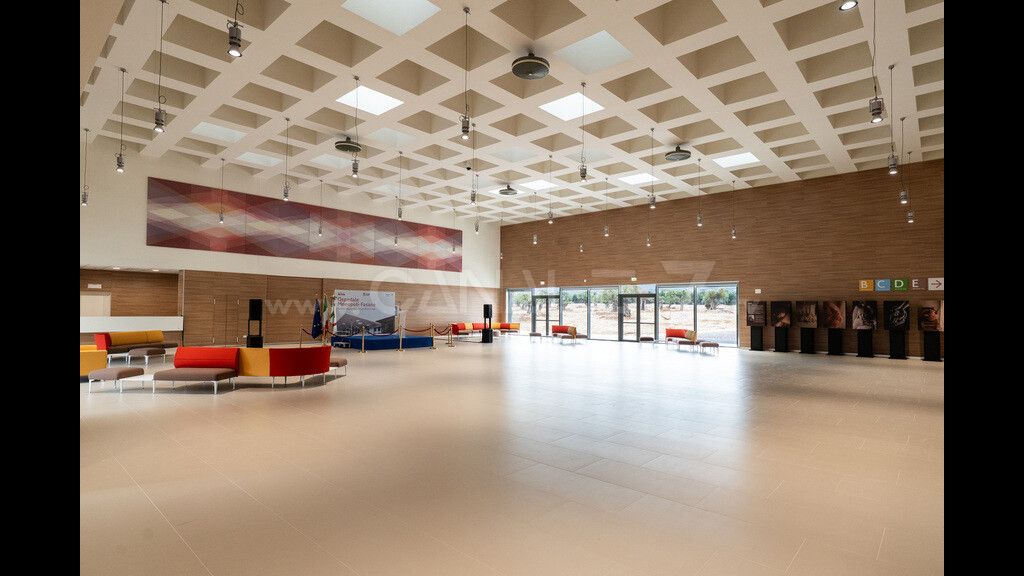 La pregevole architettura sanitaria è infine ulteriormente valorizzata dalla creatività degli artisti vincitori del Concorso internazionale ”Arte e Sanità Puglia 2023 - L’importanza dell’arte contemporanea nel processo di cura”, finalizzato alla realizzazione di opere d’arte destinate all’abbellimento dell’edificio ospedaliero, così come previsto dalle disposizioni della legge n. 717 del 1949. All’esterno, è prevista una enorme scultura di acciaio, alta sino a dieci metri, mentre all’interno dell’ospedale faranno bella mostra di sé i grandi pannelli decorativi esposti lungo i 60 metri del perimetro della hall e nove tele collocate negli spazi di attesa e di passaggio. Nel telegiornale un servizio (D.D.)
