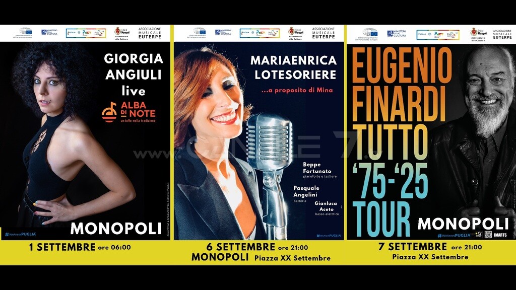Gran finale sabato 7 settembre, sempre in Piazza XX Settembre alle 21:00, con Eugenio Finardi, che porta a Monopoli il suo “Tutto '75 – '25 Tour”, celebrando i 50 anni di carriera tra rock, canzone d’autore e impegno civile. Un’occasione unica per rivivere, in una sola serata, la storia musicale e sociale di un’intera generazione.
