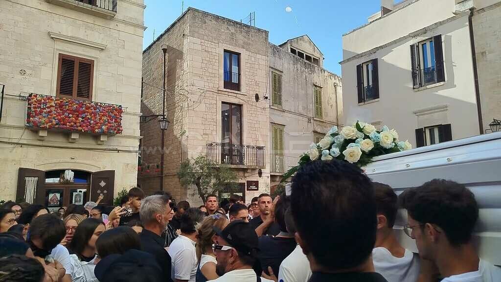 «Oltre il cielo, continuerò a darvi fastidio. Grazie di tutto Pà». Il saluto, questa volta, ha voluto darlo lui, Antonio Di Cristo, alle centinaia di persone che hanno affollato la Cattedrale di Conversano per rendergli l’ultimo saluto. Tante lacrime, ma anche silenzio e compostezza. Sulla bara, la sua foto sorridente, la foto di un campo di calcio, un pallone e la maglietta numero 27 dell’Accademia Monopoli, squadra nella quale giocava da centrocampista. Ai presenti, resteranno impresse le parole di Don Ciccio, parroco della parrocchia del Sacro Cuore che ha celebrato la messa e ha utilizzato l’omelia per stimolare i presenti a vivere e onorare Antonio, affinché la sua morte non sia vana. «Il silenzio fa rumore- ha esordito Don Ciccio-, perché a volte cerchiamo di utilizzare parole adatte, ma alcune volte non ce ne sono. Antonio era solo all’inizio della sua vita- ha proseguito il sacerdote- e, a chi chiede delle risposte, probabilmente a volte non ce ne sono. Pensiamolo così, tra i corridoi della sua scuola o sul campo di calcio. Sì, perché giocando a pallone si impara la vita, perché impari a vincere, a perdere, a giocare e stare in panchina. Impariamo da Antonio- è stato l’accorato appello di Don Ciccio- non buttiamo la vita e non perdiamo tempo. Il domani non dipende da quello che dirò, ma da quello che farò. Grazie Antonio». Il papà Nicola ha abbracciato il feretro del figlio per tutta la durata della cerimonia, senza mai staccarsi. Ha preso la parola anche il sindaco di Conversano, Giuseppe Lovascio, che ha portato il suo omaggio alla famiglia senza cadere nella retorica «Perché davvero non si sa cosa dire in queste occasioni, se non invitare a provare a farsi forza». Centinaia i ragazzi tra amici, compagni di classe e compagni di squadra: sulle maglie, la scritta «Antonio vive». Decine di palloncini bianchi hanno accompagnato il feretro all’uscita dalla Cattedrale, per accompagnare il povero Antonio nel suo ultimo viaggio.