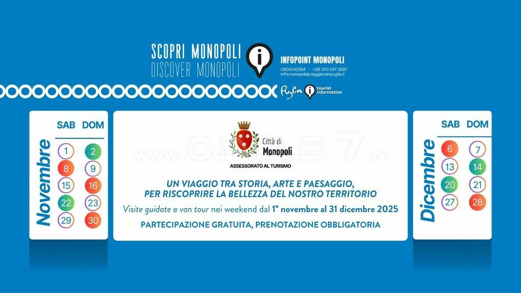 L’iniziativa è rivolta agli operatori turistici, ai proprietari delle strutture ricettive del territorio ed ai cittadini monopolitani. Un’occasione preziosa per ampliare la propria formazione, migliorare la qualità dell’accoglienza e contribuire alla promozione consapevole e autentica della città. La partecipazione è gratuita, con prenotazione obbligatoria.