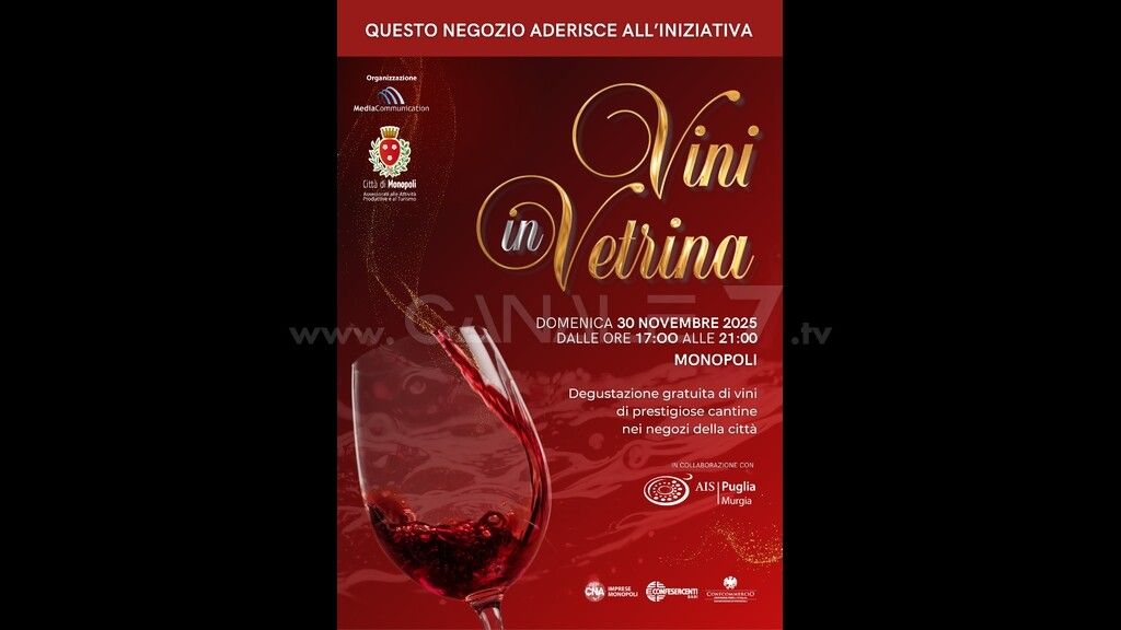 Notevole successo e gradimento ha ottenuto la settima edizione di “Vini in Vetrina”, svolta ieri domenica 30 novembre. L’evento organizzato da Media Communication ha aperto ufficialmente il calendario natalizio di Monopoli. Dalle 17.00 alle 21.00, le vie del centro si si sono trasformate in un itinerario di degustazione gratuita, dove oltre trenta cantine di pregio pugliesi in altrettante attività commerciali sono state protagoniste. L’evento è stato realizzato, con il patrocinio del Comune di Monopoli Assessorati alle Politiche Produttive e Turismo. Importante il supporto di CNA Imprese Monopoli, Confesercenti Bari e Confcommercio – Delegazione Monopoli e collaborazione con l’AIS – Associazione Italiana Sommelier, Delegazione Murgia, Media Partner: Canale 7.