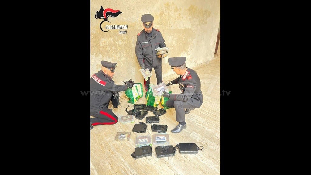 Comunicato - A Monopoli, i militari della locale Stazione Carabinieri hanno arrestato due persone, rispettivamente un 33enne e un 23enne, entrambi residenti in zona, i quali, nel corso di un controllo in un’azienda operante nel settore dell’import/export e della commercializzazione di olio e vino, attiva a livello nazionale e internazionale, sono state trovate in possesso di ben 25 panetti di cocaina, nascosti in un armadio dell’azienda, per un totale di circa 26 kg di sostanza stupefacente.
