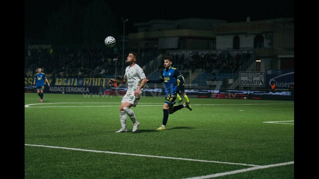 Audace Cerignola (3-5-2): Iliev; Todisco, Martinelli, Ligi; Parlato (28’ st Spaltro), Vitale (28’ st Moreso), Cretella, Paolucci, Russo (35’ st Ballabile); Gambale, D’Orazio (35’ st Ruggiero). All.: Maiuri (squalificato, in panchina Scotto)