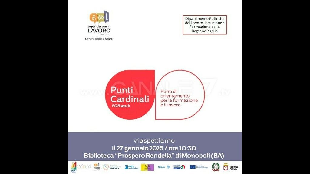 Per il ciclo di incontri territoriali legati all’Avviso “Punti Cardinali for Work. Punti di orientamento per la formazione e il lavoro”, oggi l’iniziativa ha fatto tappa a Monopoli nella Biblioteca civica “Prospero Rendella”, dedicata alla sottoscrizione degli Atti Unilaterali d’Obbligo, passaggio fondamentale per l’avvio operativo dei progetti ammessi a finanziamento.