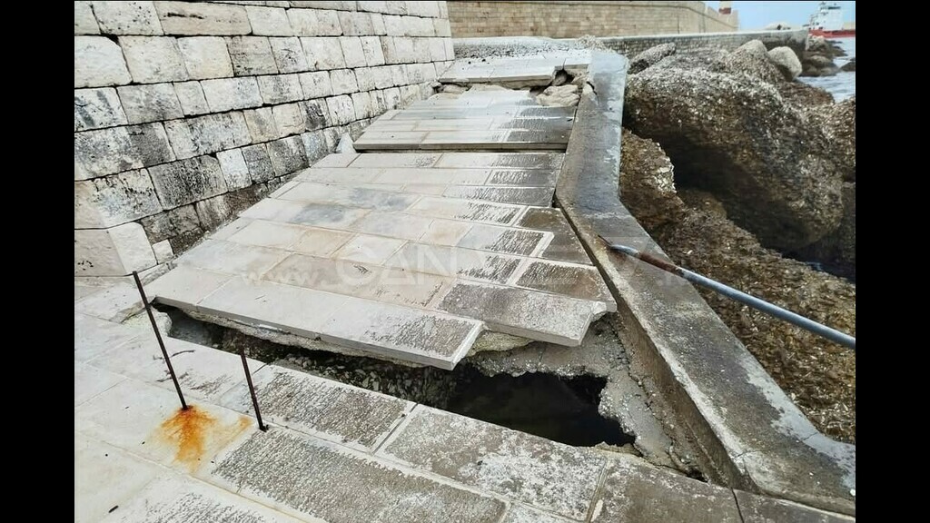 Dal Castello al Torrione Santa Maria, la già grave situazione di sgrottamenti, tale da pregiudicare la stabilità statica e strutturale delle infrastrutture sovrastanti (circostanza ben nota anche all’attuale Sindaco, già Assessore ai Lavori Pubblici, che in passato aveva realizzato un intervento puntuale e risolutivo, poi rimasto senza continuità), oggi risulta estesa e aggravata. Criticità, segnalata da numerosi cittadini, anche attraverso i social, coinvolge ormai l’intera passeggiata sotto il lungomare fino all’inizio del cantiere di Porta Vecchia.