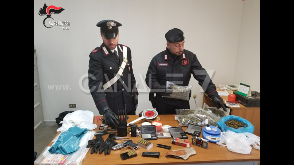 Continuano nella città di Bitonto i servizi coordinati dal Comando Provinciale di Bari, finalizzati a smantellare le piazze spaccio gestite da gruppi criminali attivi nel centro urbano ed i risultati non si sono fatti attendere. Nella giornata di ieri militari del Comando Provinciale, della Compagnia di Molfetta e dell’11° RTG CC Puglia, hanno sottoposto ad un accurato controllo un 33enne incensurato, sul conto del quale è stata eseguita una perquisizione domiciliare. Nel corso della stessa sono state rinvenute: una pistola modificata, priva di matricola, con 6 cartucce cal. 7,65 nel serbatoio, pronta a fare fuoco; un caricatore con 14 cartucce cal. 9x21, altre 45 cartucce cal. 9x21 e n.29 cartucce cal. 380, nonché 700 grammi di marijuana, 16 grammi di cocaina, 3 bilance di precisione ed un inibitore di frequenze “jammer”.