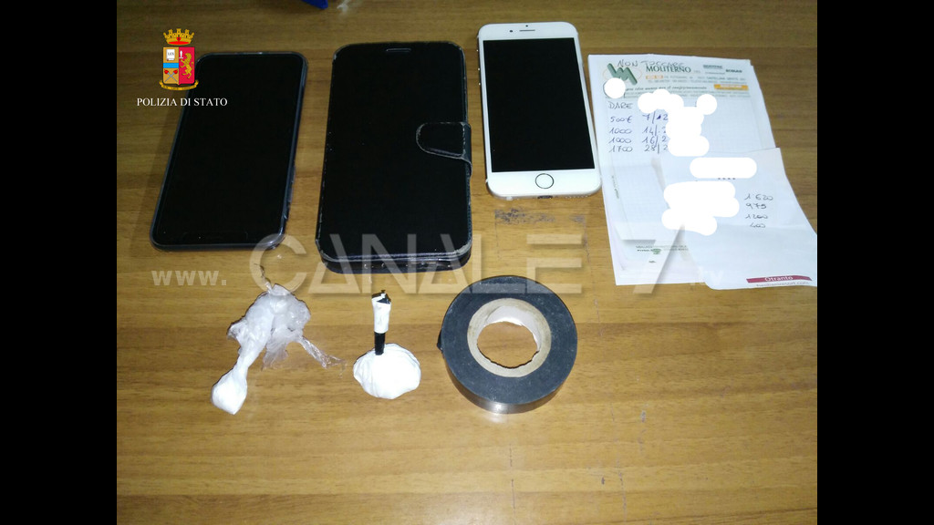 Si procedeva a una perquisizione all’interno dell’ attività che consentiva di rinvenire grammi 6.5 di cocaina suddivisa in due involucri a forma di birilli nonché materiale per il confezionamento, appunti manoscritti su fogli di un taccuino riconducibili alla contabilità con indicati riferimenti a nomi, soldi e date.