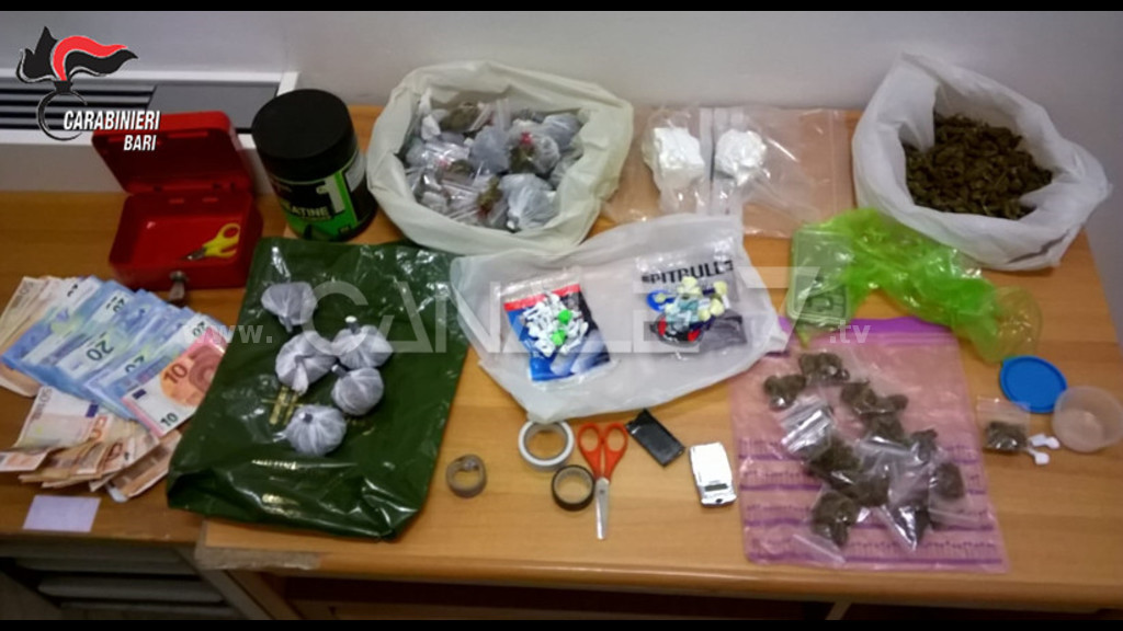 La successiva perquisizione estesa alla sua abitazione ha permesso di rinvenire, occultati sul terrazzino della casa di proprietà, duecento grammi di cocaina ed ulteriori quattrocento grammi di marjuana, il tutto già suddiviso in dosi, nonché il materiale necessario al suo confezionamento, come la creatina. Rinvenuta anche una considerevole somma di denaro costituita da 1.100,00 euro, suddivisa in banconote da piccolo taglio. Presso l’abitazione è stato inoltre trovato e sottoposto a sequestro anche un efficiente impianto di videosorveglianza, utilizzato per eludere eventuali controlli delle Forze dell’Ordine.