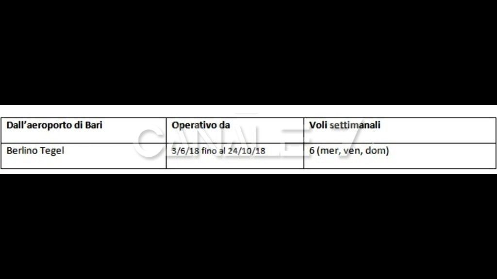 ( Da comunicato) - Easyjet, compagnia aerea leader in Europa, annuncia il primo collegamento verso Berlino Tegel dall’aeroporto di Bari. Il collegamento, in vendita da oggi, saràoperativo con 3 frequenze settimanaliper tutta la stagione estiva - a partire da giugno 2018 - e disponibile da oggi sul sito , sull’app mobile e sui canali GDS.