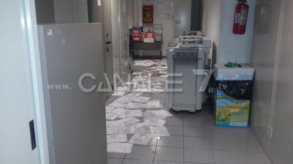 Locali del tribunale di via Nazariatz allagati ( immagine di USB Giustizia) a causa del temperale che ha imperversato questa mattna nel capoluogo. Allagata anche la tendopoli allestita nel parcheggio del palagiustizia, dichiarato inagibile perchè