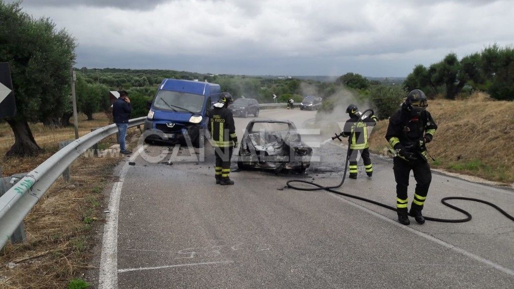 Hanno raggiunto il luogo dell'incidente anche i vigili del fuoco del distaccamento di Putignano che hanno provveduto a spegnere l'incendio e due pattuglie della Polizia locale di Monopoli per i rilievi di rito e la gestione viabilità. L'auto è andata completamente distrutta. Disagi alla circolazione sino a quando i mezzi non sono stati rimossi.