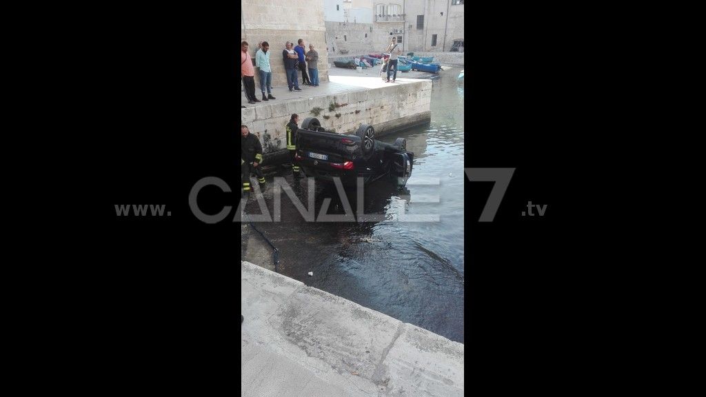 MONOPOLI - Rocambolesco incidente questo pomeriggio al porto di Monopoli. Una Fiat Tipo nuova di zecca, con due anziani a bordo, è finita in mare in zona porto vecchio restando capovolta in un tratto dove l'acqua, per buona sorte dei malcapitati non è molto alta. Alla guida del mezzo vi era un 87enne di Conversano, accanto la moglie. Pare che l'uomo non si sia accorto dell’imminente termine della banchina mentre effettuava una serie di manovre e sia finito nel vuoto. Oltre tutto la zona dove stavano transitando i due anziani è interdetta al traffico veicolare. Sul posto, allertati da alcuni testimoni che nel frattempo si erano attivati per estrarre la coppia dal mezzo, si è portata subito un'ambulanza del 118 che ha provveduto a medicare i coniugi, che grosso modo se la sono cavata con un grande spavento e qualche graffio. Sul luogo dell'incidente sono intervenuti la Capitaneria di Porto, la Polizia di Stato, Guardia di Finanza e i Vigili del fuoco del distaccamento di Putignano, che hanno dovuto seguire delicate operazioni per il recupero del mezzo in una parte del porto angusta per poter effettuare qualunque manovra. Molto complessa è risultata l’operazione di ribaltamento del mezzo, ormai ridotto ad un rottame.
