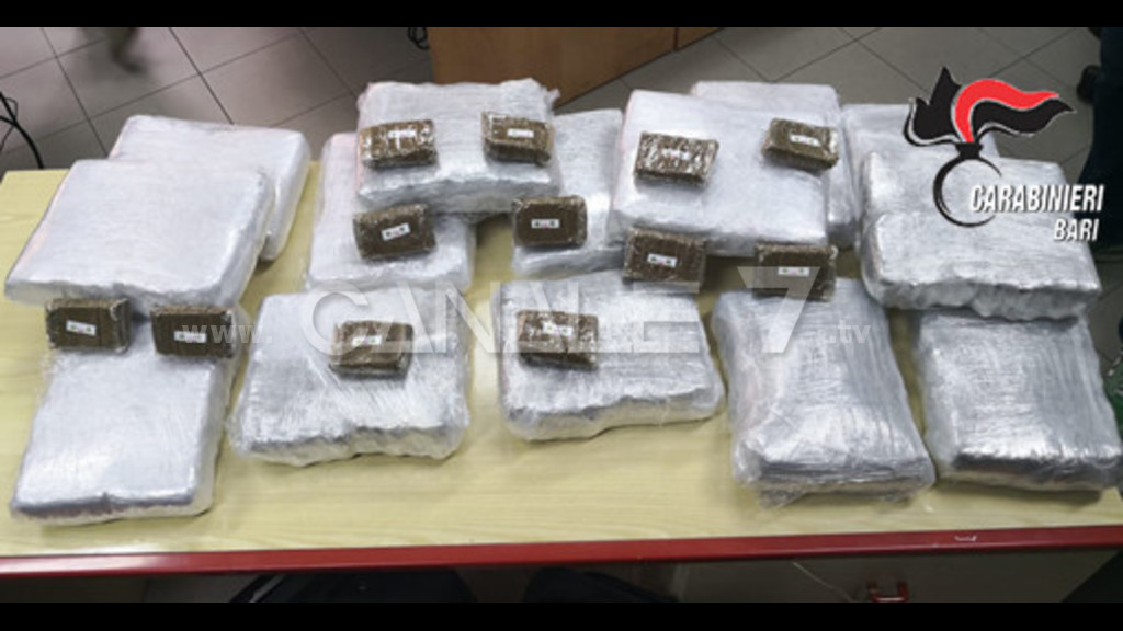 Il predetto, fermato ad un posto di controllo mentre era alla guida di una monovolume, avendo assunto un atteggiamento sospetto, induceva i militari ad eseguire una perquisizione veicolare che portava al rinvenimento ed al sequestro di quindici panetti per complessivi kg. di sostanza stupefacente del tipo “Per il 32enne sono così scattate le manette e, su disposizione della competente A.G., è stato tradotto presso la Casa Circondariale di Trani (BT).