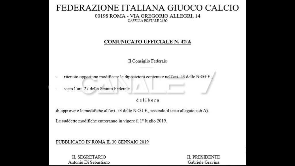 Oggi dovrebbe essere il giorno dell'esclusione di Matera e Pro Piacenza dal campionato di serie C. Ma, rispetto ai giorni scorsi, c'è una importante novità regolamentare. Il 30 gennaio, infatti, il Consiglio Federale ha stabilito la modifica dell'articolo 53, vale a dire che in caso di esclusione delle squadre dal rispettivo campionato di appartenenza, i risultati non sarebbero validi in qualunque caso. Abolendo così la differenza tra girone di andata e quello di ritorno. Il comunicato della FIGC del 30 gennaio non riportava, però un aspetto fondamentale: la data dalla quale la modifica sarebbe stata valida. Evidentemente, anche dopo qualche rimostranza da parte di squadre che sarebbero state penalizzate dal cambio di norma in corsa, è stata aggiunta una postilla fondamentale: la modifica al regolamento sarà valida dal primo luglio. Dunque, se oggi, come praticamente certo, dovesse essere sancita l'esclusione del Matera, i risultati maturati sinora resterebbero validi ed alle squadre che avrebbero dovuto affrontare successivamente i lucani, sarà assegnato il 3-0 a tavolino. Sino al 30 giugno sarà cosi, dal primo luglio si cambia. Ma il rischio è stato quello di azzerare tutto sin da ora, penalizzando fortemente le squadre che avevano battuto il Matera nel girone di andata rispetto a chi, invece, ci aveva perso punti ( tra queste Catanzaro e Casertana).
