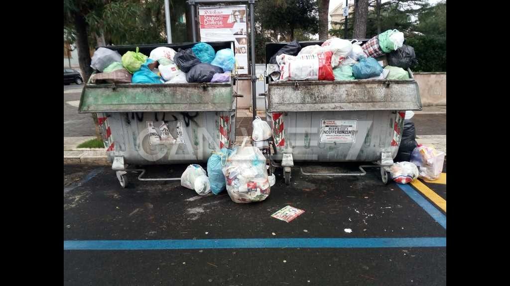 colme di rifiuti e cassonetti pieni, nonostante l'invito del sindaco a non conferire rifiuti, compreso il porta a porta. Questo lo scenario stamattina a Monopoli