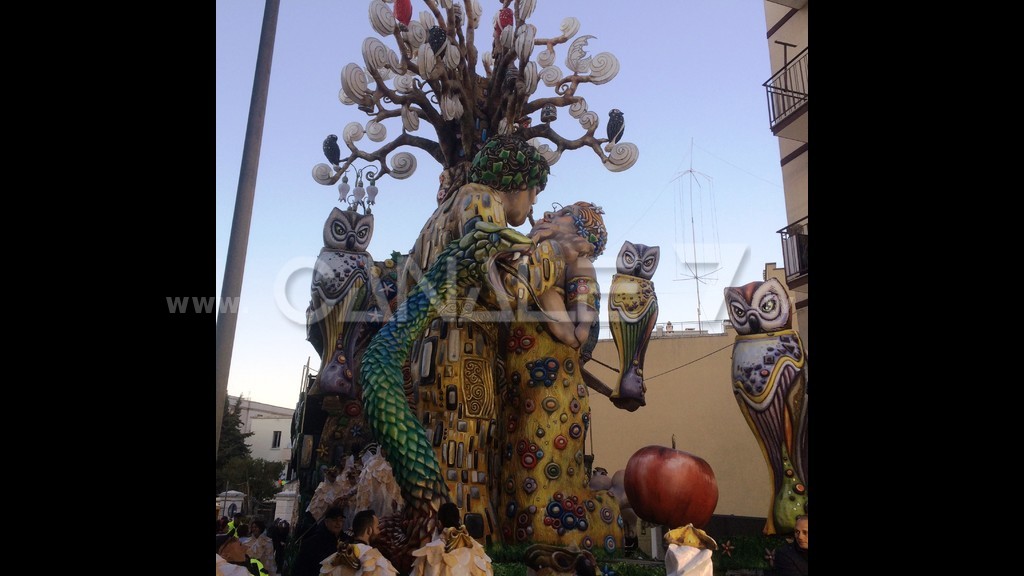Il carro allegorico sul bacio omosessuale ha vinto la 625 edizione del Carnevale di Putignano.