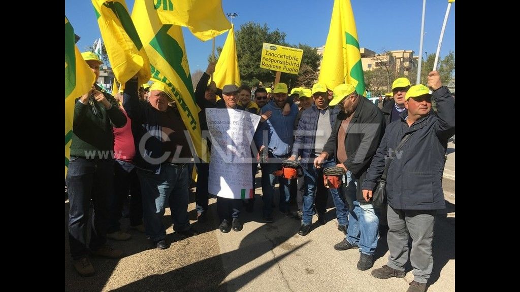 La delegazione di Coldiretti Puglia, guidata dal presidente regionale Savino Muraglia, ha abbandonato l'incontro convocato dall'Assessore regionale Di Gioia a Lecce, non prima di rinnovare la richiesta delle sue dimissioni. "Disconosciamo l'Assessore e il suo operato e rinnoviamo la richiesta delle sue dimissioni – ha detto Muraglia - per i ritardi, la negligenza, perché non ha ascoltato il territorio e le necessità del popolo dell'olio salentino che è stato abbandonato a se stesso. Un altro anno così è inaccettabile". Erano circa mille i dimostranti tra olivicoltori, frantoiani e vivaisti che hanno presidiato durante la riunione il luogo della riunione con trattori, motoseghe e pale meccaniche e una montagna di legna degli ulivi contagiati davanti all’ufficio provinciale di Lecce dell’Assessorato regionale all’Agricoltura. "Sentire ancora una volta che l’assessore Di Gioia non ha la forza di far emanare il Decreto Emergenze che prevedesse precise deroghe all'espianto nell’area infetta è una vergogna - ha aggiunto il presidente Muraglia- Se non ha la forza, si deve dimettere “. L’ Assessore Di Gioia giù le mani dall’agricoltura del Salento: Dimettiti”, “Fermiamo la Xylella E' #disastrocolposo”, “Burocrazia fa più danni della Xylella”, “Più scienza e meno stregoni”, “Assessorato agricoltura chiuso per conferenza stampa”, sono solo alcuni degli slogan che si leggevano su striscioni e cartelli della protesta. “Basta con le conferenze stampa quotidiane, i rimpalli di responsabilità, i tira e molla, che sono solo diversivi –prosegue la nota di Coldiretti Puglia. Dopo quasi 4 anni sono ancora bloccati ben 100 milioni di euro del Piano di Sviluppo Rurale per i bandi per espianti e reimpianti, gli investimenti e i frantoi, le aziende al collasso sono costrette a pagare le cartelle dei consorzi di bonifica, i vivai ancora non possono movimentare le piante all’interno dell’area infetta. Parleremo direttamente con il presidente della Regione Emiliano che convocherà, probabilmente già lunedì. Non accettiamo più che si parli e basta – continua Muraglia – vogliamo fatti per il popolo del Salento, atti concreti, deroghe ai vincoli, rispetto delle deroghe regionali già approvate il 21 dicembre 2018 e mai applicate e risorse. Intanto la Xylella avanza inesorabilmente verso nord ad una velocità di più 2 chilometri al mese – conclude Coldiretti Puglia - il contagio della Xyella che ha già provocato con 21 milioni di piante infette una strage di ulivi lasciando un panorama spettrale”.