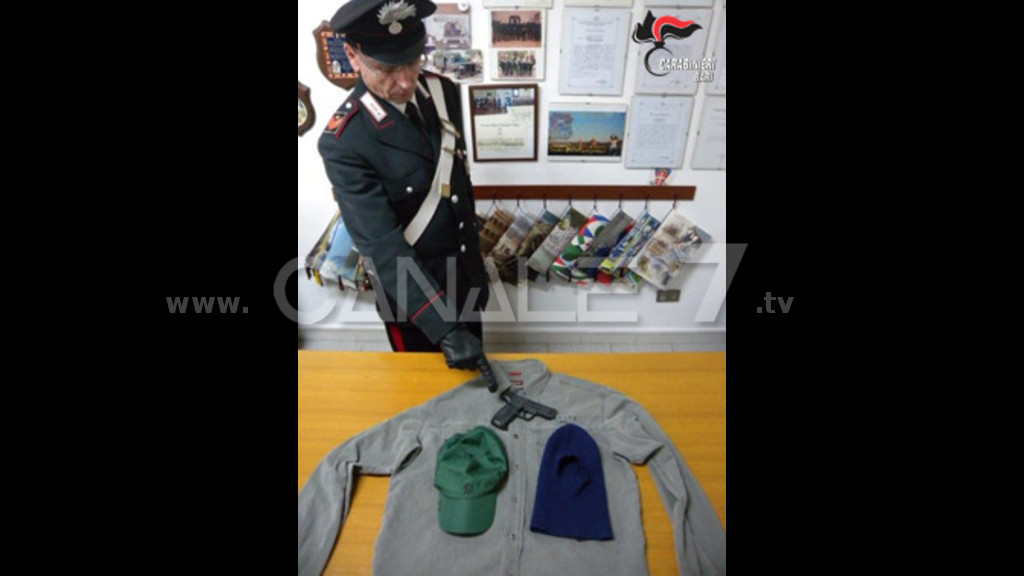 Dopo poco, lo stesso soggetto veniva nuovamente osservato dai militari che lo stavano cercando nella zona, mentre, con determinazione, si accingeva a fare irruzione presso un’altra farmacia poco distante dalla prima, colpita proprio qualche giorno addietro da una rapina. Nell’occasione, lo sconosciuto veniva bloccato dai due militari e trovato in possesso di una pistola, risultata fedele riproduzione di un’arma semiautomatica priva del tappo rosso ed un passamontagna. Lo stesso aveva, inoltre, cambiato il giubbino ed indossava un kway di colore grigio ed un cappellino di colore verde tipo baseball con visiera. Il prevenuto veniva quindi identificato in 50enne, incensurato di Santeramo in Colle (BA) e, sul suo conto, dopo la perquisizione personale eseguita sul posto, scattava la perquisizione domiciliare, operata unitamente ai Carabinieri della Stazione CC di Santeramo in Colle (BA). Nel corso di tale attività veniva rinvenuta merce al vaglio dei militari, in quanto potrebbe essere riconducibile al provento di rapine commesse in altri esercizi commerciali.