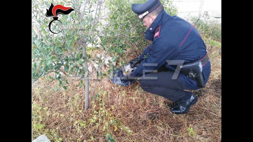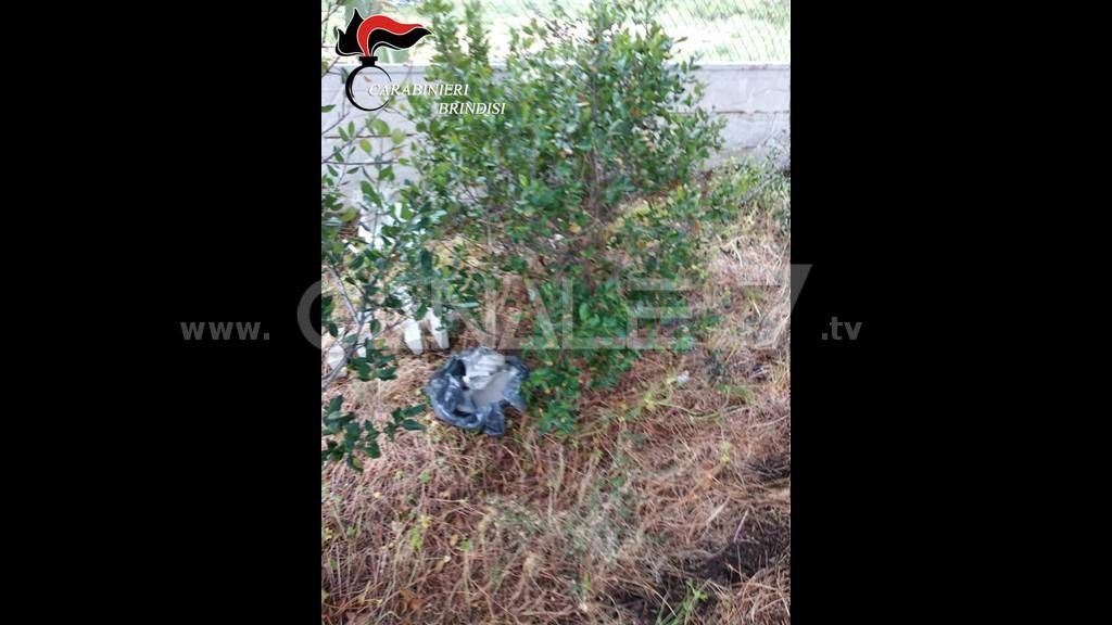 Nel prosieguo delle attività di polizia giudiziaria finalizzate a riscontrare la presenza di altro stupefacente ovvero altro materiale illecito, è stato rinvenuto nelle adiacenze di un arbusto, anch’esso ben dissimulato tra la vegetazione tale da far ritenere, ad una prima superficiale osservazione, che potesse trattarsi di semplice immondizia, un involucro, che pulito dalla vegetazione posta a ridosso, è emerso di forma sferica, accuratamente sigillato con dei vari strati di nastro adesivo del tipo utilizzato per confezionare i pacchi, e contenente una sostanza gommosa di colore grigio. Constatato il singolare ritrovamento e quindi la particolare natura della sostanza non facilmente riscontrabile né assimilabile ad alcuna delle sostanze poste in commercio e di uso comune, sono stati attivati per la specifica competenza in materia i Carabinieri Artificieri di Taranto. Nel corso del primo esame, i militari specializzati, hanno immediatamente riscontrato che si trattava di sostanza con potere esplosivo e pertanto tutta l’area è stata immediatamente posta in sicurezza. Per quanto sopra, la stessa, di concerto con l’Autorità giudiziaria, è stata trasportata con tutte le cautele del caso, all’interno di una cava dove è stata fatta brillare, secondo le specifiche modalità previste dalla legge in materia di sostanze esplodenti, facendo confluire sul posto anche personale dei Vigili del Fuoco e del 118.