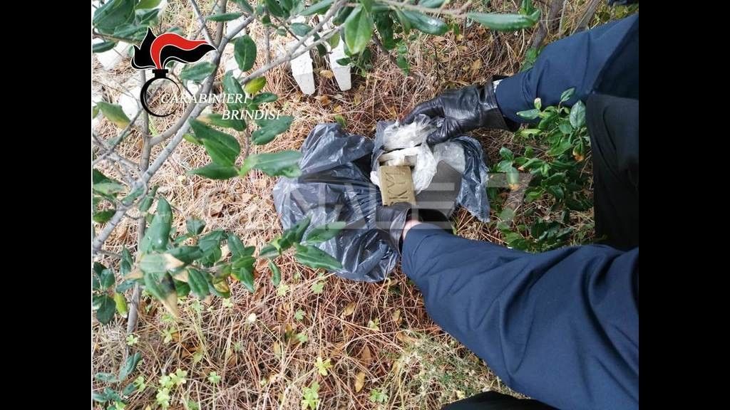 FASANO - I Carabinieri della Compagnia di Fasano coadiuvati dai militari del Nucleo Investigativo di Brindisi e da quelli del Nucleo Cinofili, nel corso di un servizio per il controllo del territorio, nella frazione balneare di Savelletri di Fasano, hanno effettuato varie perquisizioni per la ricerca di armi e stupefacenti. Nell’ambito dell’attività, grazie al sensibilissimo fiuto del cane Jarno, in un terreno abbandonato e pertanto in cattivo stato di manutenzione, confinante con le prime aree perquisite, nelle adiacenze di un arbusto, nascosto tra la vegetazione, è stato rinvenuto un sacco di plastica di colore nero del tipo usato per la spazzatura. All’interno del sacco vi erano custoditi ben 11 panetti di hashish, alcuni perfettamente sigillati, del peso complessivo di 1,1 kg riportanti ciascuno un codice alfanumerico.