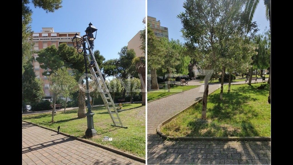 Si tratta di un primo intervento che si completerà nelle prossime settimane con la sostituzione dell’impianto di irrigazione, con la sostituzione della siepe perimetrale e la piantumazione di nuovi alberi. L’intervento si completerà con la riqualificazione delle aiuole che ospitano il parco giochi.