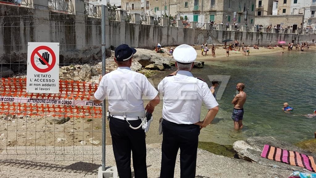MONOPOLI - Polizia Locale in azione questa mattina , domenica 9 giugno, sulla spiaggia libera di Portavecchia. I vigili urbani hanno fatto sgomberare l'area ritenuta pericolosa e che è interessata da lavori di messa in sicurezza. Pare ci sia anche un'ordinanza a proposito. Non poche le lamentele dei bagnanti fedelissimi della caletta che hanno esternato rimostranze verso l'attività degli stessi vigili chiamati comunque a far rispettare il divieto. Fa comunque specie la tempistica: proprio ieri alcuni cittadini avevano ripulito quel tratto di spiaggia lamentandosi dell'inerzia dell'Amministrazione. Oggi lo sgombero.
