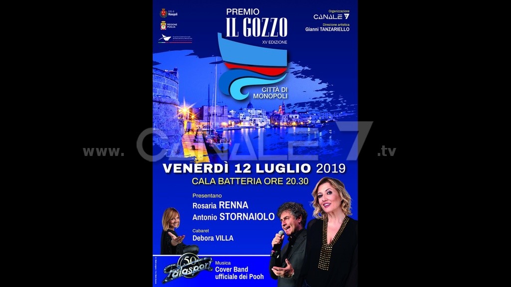 Torna venerdì prossimo 12 luglio nell’incantevole cornice di Cala Batteria il Premio “ Il Gozzo” XV Città di Monopoli 15esima edizione. La Puglia sorprende anche per la varietà di talenti e professionalità che operano sul territorio e non solo e che consentono alla regione di distinguersi in campi differenti. E dunque a Cala Batteria verrà premiato chi si è distinto nei settori: cultura, spettacolo, informazione, imprenditoria a livello nazionale ed internazionale. A queste categorie si aggiunge un premio per i giovani talenti ed un Premio speciale della città. La manifestazione è organizzata da Canale 7 per la direzione artistica di Gianni Tanzariello, editore, fondatore dell’evento con il sostegno della locale Amministrazione comunale, Assessorato alle Politiche Culturali, della Regione Puglia e la collaborazione dell’Autorità di Sistema Portuale del Mare Adriatico Meridionale. I riconoscimenti si inseriscono in una serata di grande spettacolo. Numerosi gli ospiti che contribuiranno ad impreziosire l'evento. A condurre Rosaria Renna, monopolitana doc, tra le voci più famose della radiofonia italiana, oggi in forza a Radio Monte Carlo, e vincitrice del Premio “Il Gozzo” ed. 2011 ed Antonio Stornaiolo che, con la sua ironia, saprà stemperare le emozioni che ogni premiazione susciterà nel pubblico. Inoltre, a divertire la platea, le incursioni di una grande attrice e comica italiana Debora Villa. Immancabile la musica, quest’anno affidata ai Palasport. A loro il compito di stupire il parterre con incredibili e fedeli interpretazioni di alcuni dei brani più celebri della famosa band. Appuntamento dunque a venerdì 12 luglio a Cala Batteria alle ore 20.30.