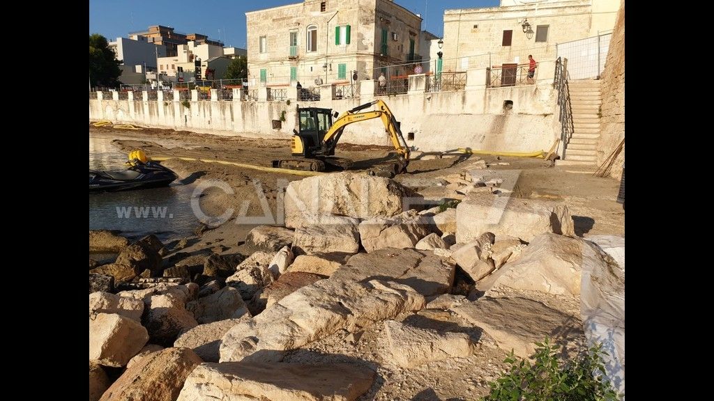 Dovrebbero concludersi la prossima notte lunedì 22 luglio, al massimo martedì 23, i lavori di riposizionamento della sabbia dell'arenile di Porta Vecchia a Monopoli ( Bari). Le operazioni sono condottie dall'Epc di Francesco Tricase e in corso da mercoledì scorso 17 luglio e secondo il cronoprogramma sarebbero dovuti durare quattro- cinque giorni, salvo complicazioni. Lo stesso geometra Tricase ci conferma che se non interverranno complicazioni, pur sempre in agguato, quali stop alle macchine, ad esempio intasamenti dei tubi di aspirazione delle pompe per materiali depositati sul fondo, il tutto dovrebbe completarsi nel giro di uno o due giorni. L'assessorato ai Lavori Pubblici segue con attenzione i lavori e il sindaco Angelo Annese, spera di poter restituire quanto prima ai cittadini ai turisti questo luogo simbolo della città.