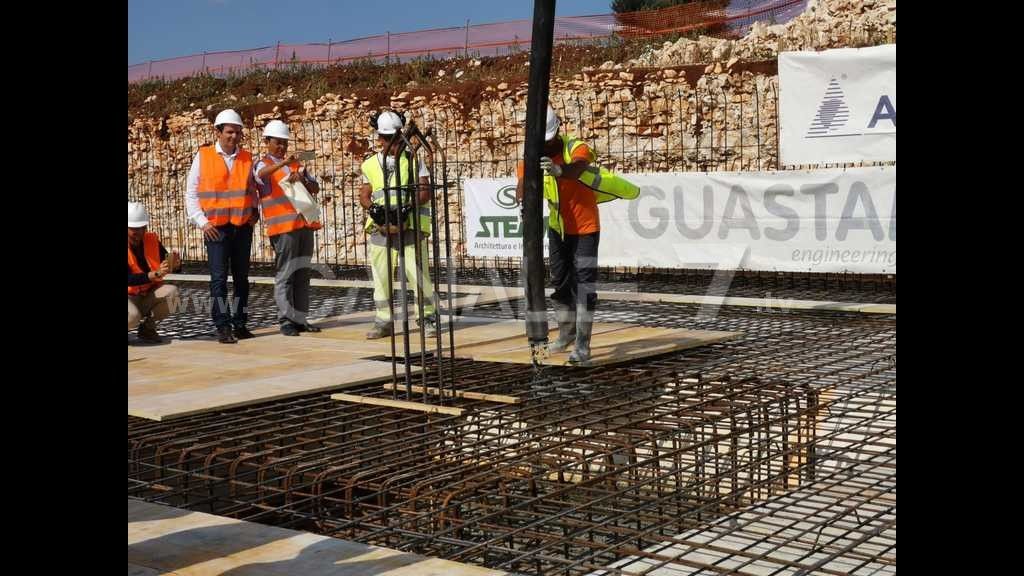 Continuano senza sosta i lavori per la costruzione del nuovo ospedale Monopoli-Fasano. Oggi altra giornata importante con il getto del primo plinto di fondazione. Uno step importante quasi come la posa della prima pietra tanto che per l’occasione, sul cantiere di contrada S. Antonio d’Ascula, sono intervenuti il presidente della Regione Puglia Michele Emiliano, il presidente della Commissione Bilancio Fabiano Amati, i direttore generali delle Asl di Bari e Brindisi Antonio Sanguedolce e Giuseppe Pasqualone e il sindaco di Monopoli Angelo Annese. Presenti naturalmente anche i tecnici a cominciare dal direttore dei lavori Gianluca Calace e del progettista Albert De Pineda. A benedire la prima colata di cemento don Biagio Convertini.