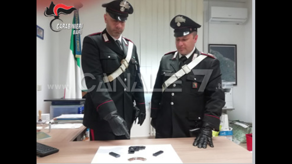 L’operazione è scattata all’alba, quando i militari hanno rintracciato il 61enne presso un cantiere edile ove erano in corso alcuni lavori. In seguito, gli operanti, si sono portati presso la sua abitazione per procedere ad una perquisizione domiciliare. L’arma è stata trovata nel garage, in ottimo stato di conservazione: si tratta di una pistola beretta cal. 6.35, con caricatore inserito contenente 6 colpi, mentre in una cassettiera è stato rinvenuto un secondo caricatore e 8 proiettili. Sono in corso gli accertamenti per stabilirne la provenienza, considerato che la matricola risulta abrasa proprio al fine di ostacolare l’identificazione del legittimo proprietario. L’uomo, estraneo agli ambienti della criminalità, ultimamente avrebbe parlato con qualcuno del possesso di tale pistola, da qui la notizia ai Carabinieri e quindi i conseguenti accertamenti. Al termine della perquisizione, l’uomo è stato arrestato per detenzione di arma con matricola abrasa (Art.23 della Legge n.110/1975) e, su disposizione della competente A.G., tradotto presso la Casa Circondariale di Bari in attesa di giudizio. L’arma, sottoposta a sequestro, verrà sottoposta agli accertamenti tecnici-balistici del caso a cura della Sezione Investigazioni Scientifiche del Comando Provinciale di Bari.
