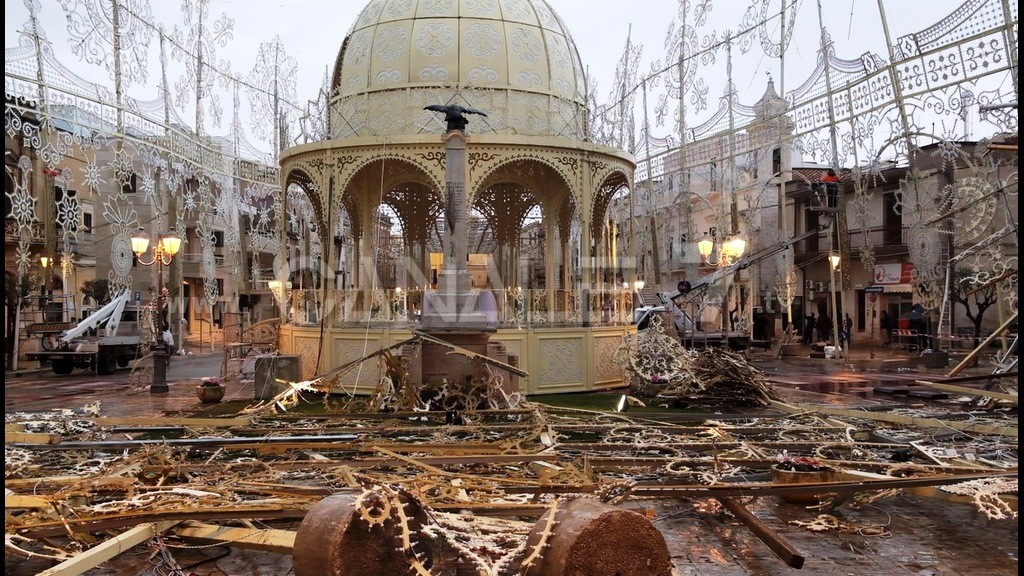 forte vento, nella notte sono crollate ad Adelfia alcune delle luminarie