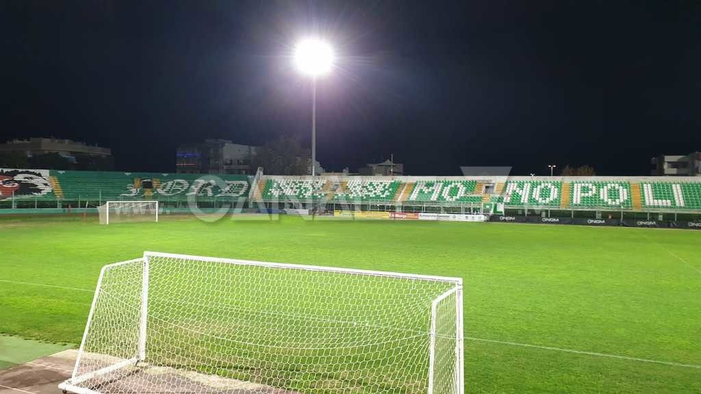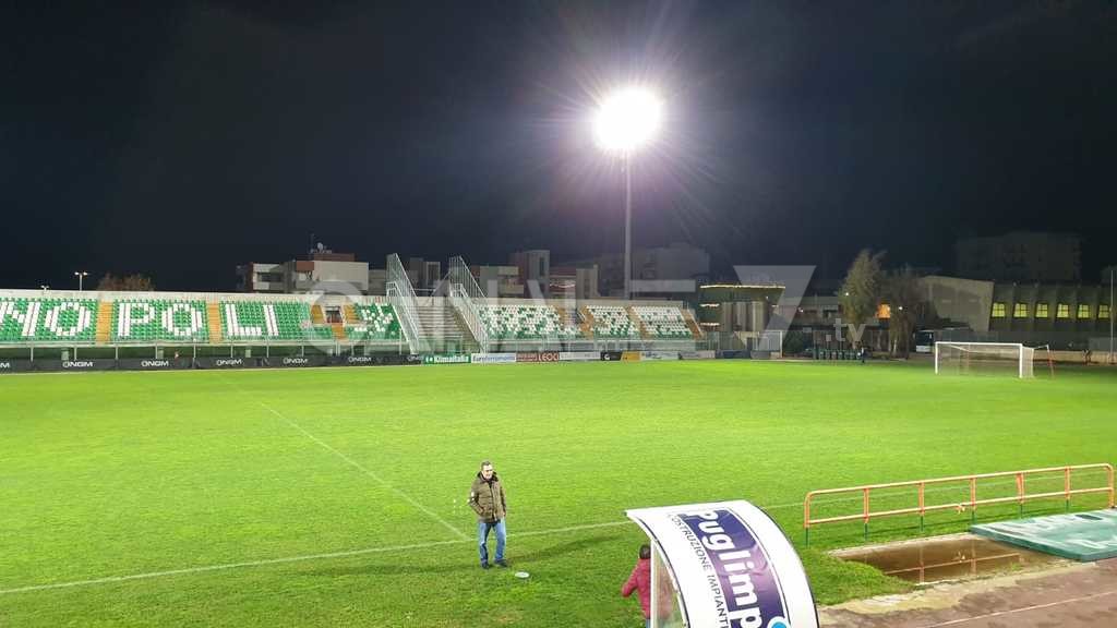 Quasi conclusi i lavori all'impianto di illuminazione del "Veneziani". Nella giornata di oggi è stato completato il montaggio dei fari mancanti, mentre nel primo pomeriggio è stato effettuato il 50% del puntamento. Nel dettaglio, concluso il puntamento dei fari sulle torri alla sinistra della tribuna (per intenderci lato Curva), mentre nel pomeriggio di domani sarà effettuato quello delle torri mancanti (lato tensostruttura). Tutte le torri ed i fari, ad ogni modo, sono stati accesi. Già puntati i cinque nuovi fari montati sulla copertura della tribuna, novità assoluta del nuovo impianto di illuminazione. Domani, come detto, la conclusione. In mattinata con l'utilizzo dei laser, nel pomeriggio per il definitivo puntamento dei fati lato tensostruttura. Domenica il debutto del nuovo (luminosissimo) impianto di illuminazione: la partita tra Monopoli e Avellino comincerà alle 17.45