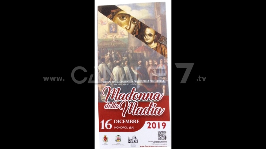 Diretta dell'approdo dell'icona della Santa Patrona di Monopoli su Canale 7 ( canale 74 dtg e in streaming su www,canale7.tv) a partire dalle 5.15 circa. A seguire la Santa Messa in Cattedrale celebrata da S. Ecc. Mons. Giuseppe Favale, vescovo della Diocesi Conversano-Monopoli.