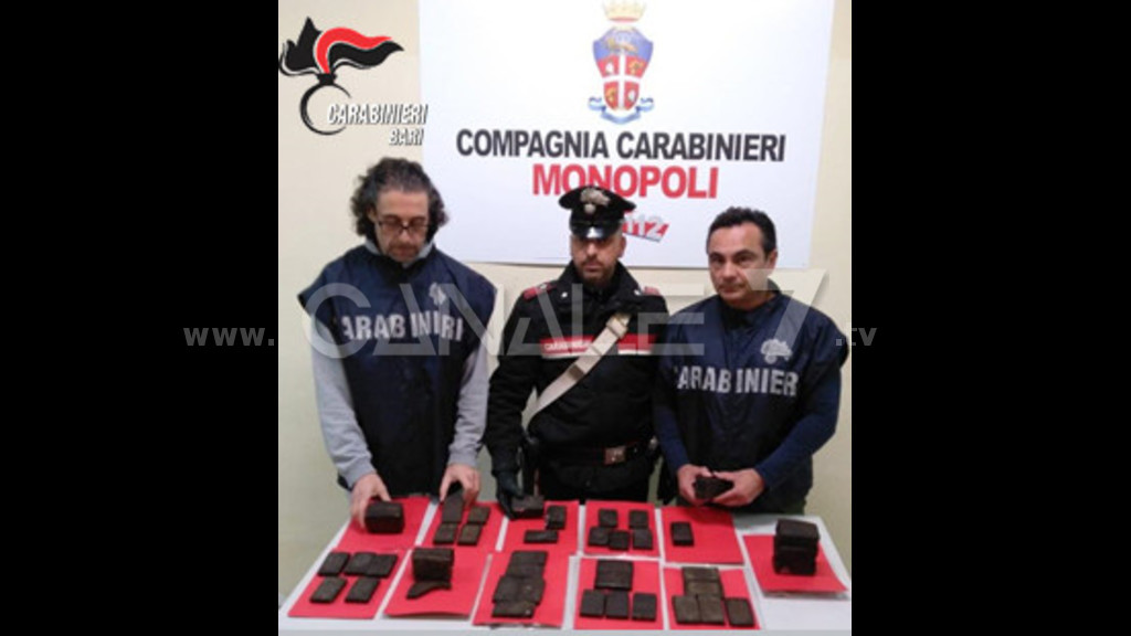 MONOPOLI - I carabinieri della Compagnia di Monopoli hanno effettuato un servizio straordinario di contrasto al fenomeno dello spaccio di droga, nel corso del quale hanno tratto in arresto due individui, denunciato a piede libero altri due e segnalato alla Prefettura di Bari 10 assuntori. Il servizio si è svolo non solo in Monopoli, ma anche nei limitrofi centri di Alberobello e Polignano a Mare, con l’obiettivo di contrastare il fenomeno dello spaccio al minuto. Oltre ai controlli su strada, i militari hanno proceduto a diverse perquisizioni domiciliari a carico di individui sospettati di detenere sostanze stupefacenti. Nel corso delle perquisizioni domiciliari sono stati arrestati F.V., 32 enne, incensurato, in quanto custodiva in casa 81 gr. di hashish già suddivisi in dosi, un bilancino di precisione e materiale per il confezionamento; S.A., di 25 anni, incensurata, la quale aveva nascosto 5,800 kg di hashish, all’interno di una ruota di scorta custodita in un container rinvenuta solo a seguito di un’accuratissima perquisizione dei militari che ha consentito di svelare l’originale nascondiglio. Lo stupefacente era già suddiviso in 60 panetti pronti alla vendita. Sono stati invece deferiti in stato di libertà un 24enne ed un 19enne, quest’ultimo con precedenti specifici, il primo sorpreso con 16 gr. fra hashish e marijuana, mentre il secondo trovato in possesso di 38 gr. di hashish. Nel corso dei controlli in strada venivano altresì identificati 10 assuntori: si tratta di giovanissimi incensurati individuati dalle pattuglie con modiche quantità di cocaina e marijuana. Ad uno di essi è stata ritirata la patente. In totale sono stati sequestrati 6,200 kg di stupefacenti fra hashish, marijuana e cocaina che saranno inviati ai laboratori per le analisi qualitative. Per gli arrestati sono scattati gli arresti domiciliari in attesa del rito di convalida come disposto dall’A.G. di Bari.