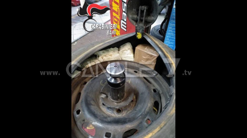 Una 25enne aveva nascosto quasi sei chili di sostanza stupefacente in un pneumatico
