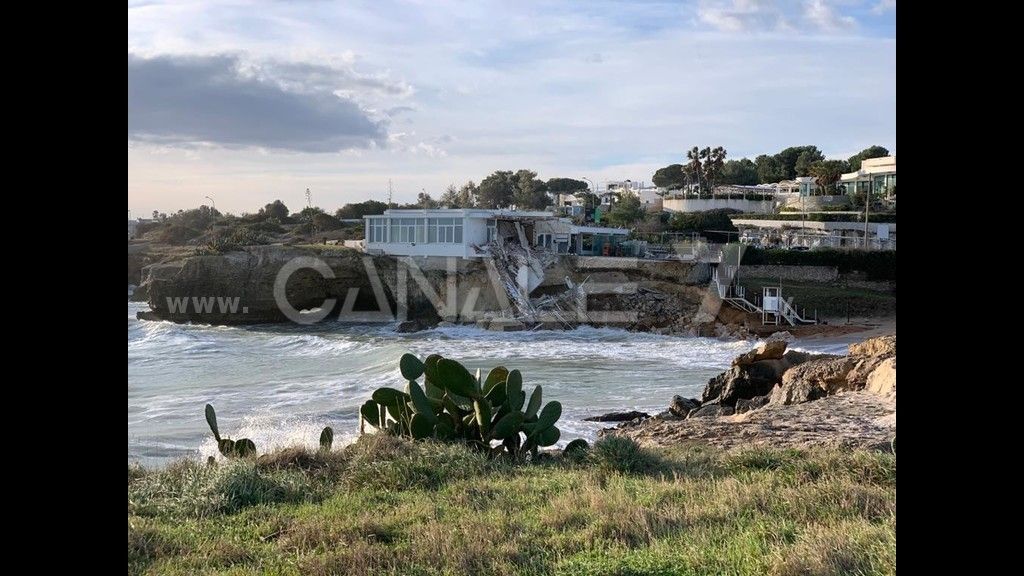 La forte mareggiata di queste ore sarebbe alla base del cedimento di una parte della scogliera su cui insiste una struttura a servizio della nota spiaggetta di Porto Giardino in località Capitolo a Monopoli ( Bari) Ingenti sembrerebbero i danni sul quale sta effettuando i primi accertamenti la locale Capitaneria di Porto. E' intervenuta anche la Polizia di Stato del locale Commissariato, la Polizia Locale e personale dell'Ufficio Tecnico comunale per gli opportuni rilievi. Nel Tg7 un ampio servizio.