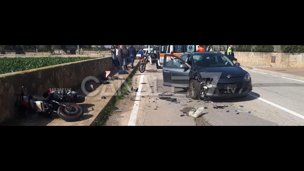 MONOPOLI - È di un ferito il bilancio di un incidente avvenuto nella tarda mattinata di oggi, domenica 1 marzo, in via Baione, nella zona industriale di Monopoli. Per cause in via di accertamento si sono scontrate una Renault Megane e una moto con a bordo un 18enne monopolitano. Il giovane, nel violento impatto, è finito sul parabrezza dell’auto cadendo poi rovinosamente sull’asfalto. Sul posto è immediatamente giunta un’ambulanza del 118 che viste le condizioni del centauro ha provveduto a trasportarlo al Policlinico di Bari. Illeso il conducente della Renault. I rilievi di rito sono stati effettuati dalla Polizia Locale.