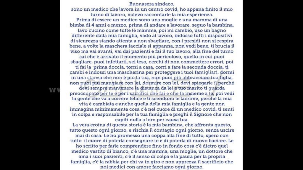 A tutti gli altri medici, così come agli infermieri e a tutti gli operatori sanitari, che oggi più che mai sono in prima linea va, per quello che vale, il mio grazie.