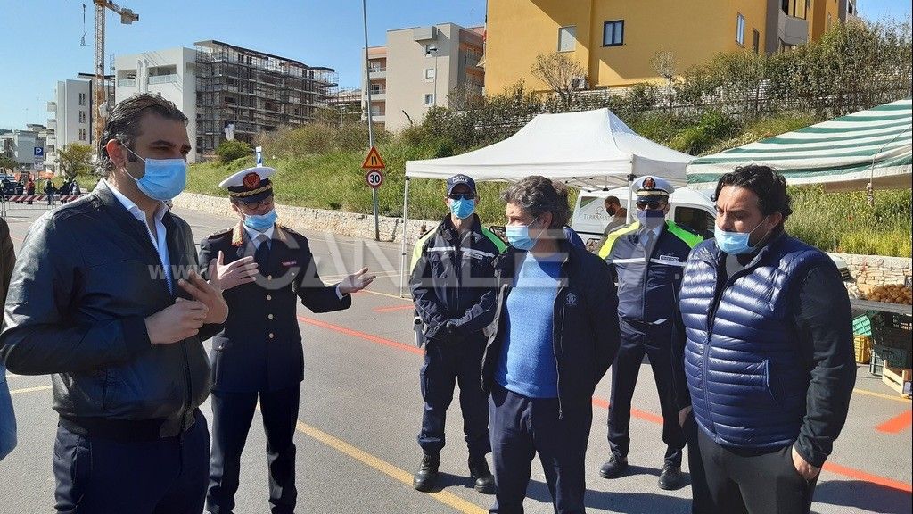MONOPOLI - Un passo avanti per tutti, operatori e clienti, verso quel ritorno all’auspicata ”nuova normalità” nella fase che occorre affrontare per mettere finalmente alle spalle l’emergenza sanitaria. Ha riaperto questa mattina il “Mercato alimentare del martedì” in via Cosimo Pisonio a Monopoli nel tratto compreso tra la via Ippolito Nievo e Via Cesare Beccaria. L’apertura è stata disposta dall’Ordinanza Sindacale n. 164 del 24 aprile 2020 nel rispetto delle disposizioni riguardanti il distanziamento sociale e l’uso di idonei Dispositivi di Protezione Individuale. In mattinata c’è stato un sopralluogo del Sindaco di Monopoli Angelo Annese, dell’Assessore alle Politiche del Commercio Aldo Zazzera, del consigliere comunale Stefano Lacatena e del Comandante della Polizia Locale Michele Cassano. Presenti anche numerosi rappresentanti delle associazioni di categoria di artigiani e commercianti che si sono anche intrattenuti qualche minuto col sindaco Annese per parlare dell’attuale critica situazione di alcuni comparti. L’ingresso all’area mercatale in via Pisonio all’intersezione con via Nievo, è stato presidiato dai volontari della Protezione Civile e da agenti della Polizia Locale, contingentato per un massimo di 150 persone ogni 30 minuti e per il tempo strettamente necessario per le operazioni di acquisto dei prodotti. È stato consentito l’accesso ad un solo componente per nucleo familiare, fatta salva la possibilità per le persone anziane (ultrasettantenni) e per le persone con disabilità di farsi assistere da una sola persona, ed esclusivamente solo se in possesso di mascherina indossata al momento dell’ingresso.