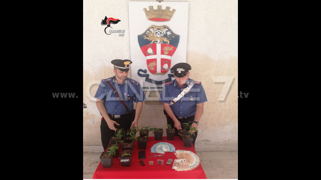 MONOPOLI - I Carabinieri della Stazione di Monopoli, nel corso di un servizio di perlustrazione, hanno arrestato in flagranza di reato un pusher con l’accusa di coltivazione e detenzione ai fini di spaccio di sostanze stupefacenti. A finire in manette è stato C.C., 38enne di Fasano, incensurato, fabbro, il quale, mentre viaggiava a bordo della sua autovettura per le vie cittadine di Monopoli, incrociando casualmente una pattuglia della locale Stazione intenta ad effettuare un posto di controllo, lanciava dal finestrino un sacchetto contenente 25 grammi di hashish ed un bilancino di precisione. I carabinieri provvedevano subito a fermare l’individuo e sottoporlo a perquisizione personale, nonché a recuperare il materiale lanciato dal veicolo. Successivamente la perquisizione veniva estesa all’abitazione di C.C., nella frazione collinare fasanese di Laureto, dove veniva rinvenuta una serra adibita alla coltivazione di 31 piante di marijuana, nonché denaro contante pari a 3.550 euro provento dell’attività illecita di spaccio. Al termine della perquisizione il giovane è stato arrestato e, su disposizione della competente Autorità Giudiziaria, è stato rimesso in libertà in attesa di giudizio.