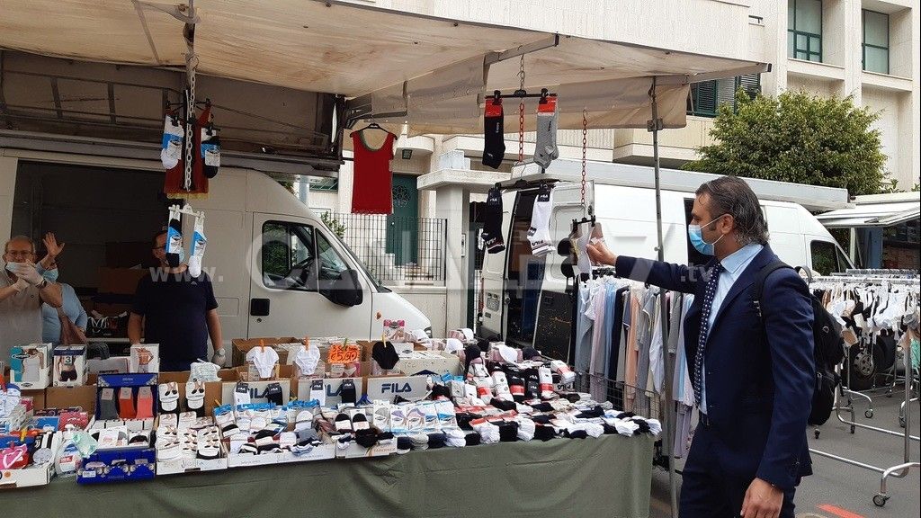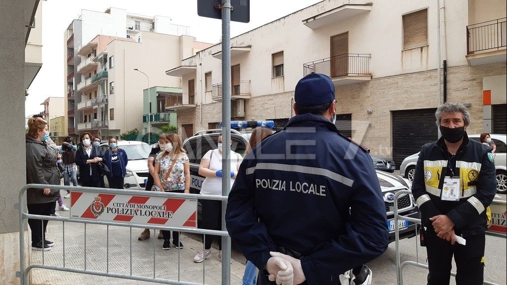 MONOPOLI - Ha riaperto questo mattina il mercato del martedì dedicato alla vendita dei prodotti non alimentari e misti a Monopoli. L’apertura è stata disposta dall’Ordinanza Sindacale n. 183 del 15 maggio 2020 nel rispetto delle disposizioni riguardanti il distanziamento sociale e l’uso di idonei Dispositivi di Protezione Individuale. In mattinata c’è stato un sopralluogo del Sindaco di Monopoli Angelo Annese, dell’Assessore alle Politiche del Commercio Aldo Zazzera e del Comandante della Polizia Locale Michele Cassano. Presenti anche il consigliere comunale Stefano Lacatena e i rappresentanti locali della Confcommercio Giuseppe Paragò e della Confesercenti Rocco Di Meo. L’ingresso all’area mercatale in sei punti (via Martiri 16 marzo 1978, lato est e lato ovest di via Trieste, via Cardarelli, via Nievo e via Pisonio) sono stati opportunamente presidiati dai volontari di Protezione Civile e dal personale di Polizia Locale. È stata consentita l’entrata contingentata per un massimo di 150 utenti per volta da ciascun varco, per un totale massimo di 750 utenti, per il tempo strettamente necessario per le operazioni di acquisto dei prodotti. L’accesso è stato consentito esclusivamente solo se in possesso di mascherina che doveva essere obbligatoriamente indossata al momento dell’ingresso; ciascun avventore, una volta raggiunto il banco di vendita di cui necessitava, doveva fermarsi sul “punto di posizionamento dell’utente” evidenziato da segnaletica orizzontale che garantiva il distanziamento sociale di almeno un metro. Se già occupati, l’utente doveva mantenere la distanza di almeno un metro da essi al fine di evitare eventuali assembramenti, posizionandosi lungo la “linea di distanziamento sociale”.