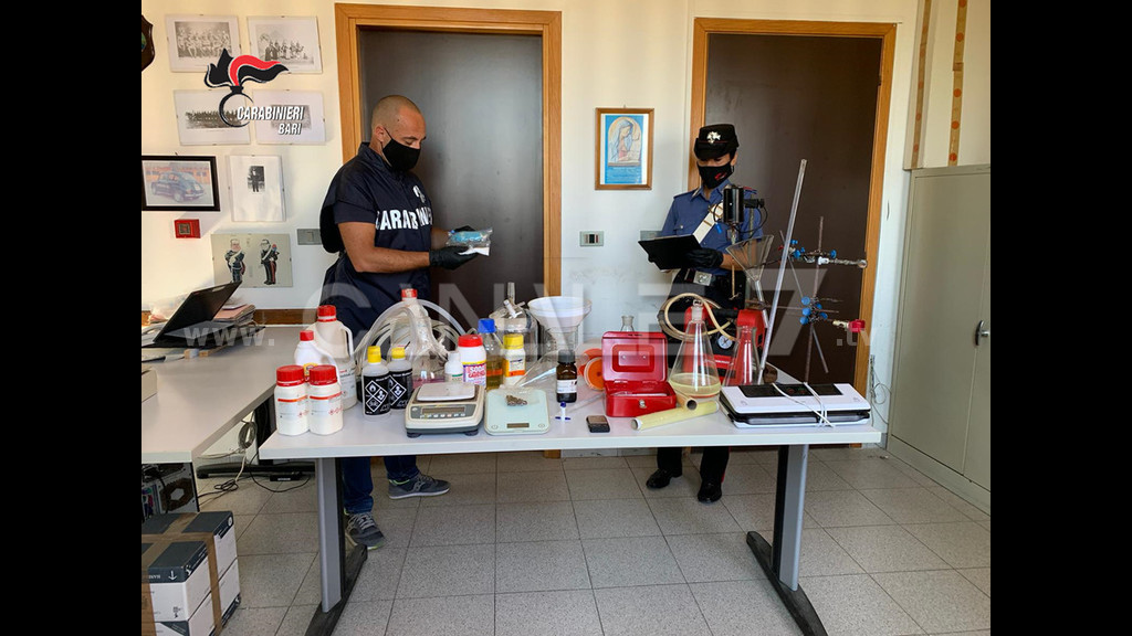 CONVERSANO - I Carabinieri della Tenenza di Mola di Bari hanno arrestato in flagranza di reato G.A., di anni 45 e P.A., di anni 40, i quali, all’interno di un garage sito in Conversano, avevano organizzato un laboratorio per la lavorazione di amfetamine. Il blitz è scattato dopo che i militari avevano fermato, nel corso di un controllo, uno dei due indagati mentre viaggiava a bordo della sua autovettura in Mola di Bari. Considerato l’atteggiamento sospetto dell’individuo, decidevano di estendere il controllo presso un locale che quest’ultimo aveva in uso in Conversano unitamente al suo complice, nel frattempo rintracciato dagli operanti. Una volta entrati i militari rinvenivano un autentico laboratorio per la trasformazione di sostanze stupefacenti, ovvero imbuti, ampolle, filtri ed altre sostanze chimiche da taglio, nonché 60 gr. di amfetamine e 16 di hashish. Al termine delle operazioni tutta l’attrezzatura e la sostanza stupefacente sono stati sequestrati mentre i due venivano tratti in arresto e sottoposti agli aa.dd. a disposizione della A.G. di Bari.