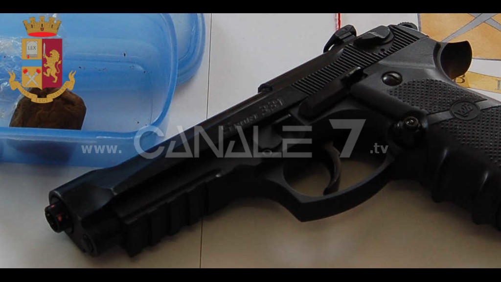 Droga e pistola giocattolo, priva di tappo rosso, sequestrati durante una perquisizione domiciliare.
