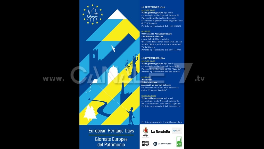Eventi in programma oggi e domani domenica 27settembre. Causa maltempo le iniziative programmate per questo pomeriggio a Monopoli nell’ambito delle Giornate Europee del Patrimonio, SONO RINVIATE.
