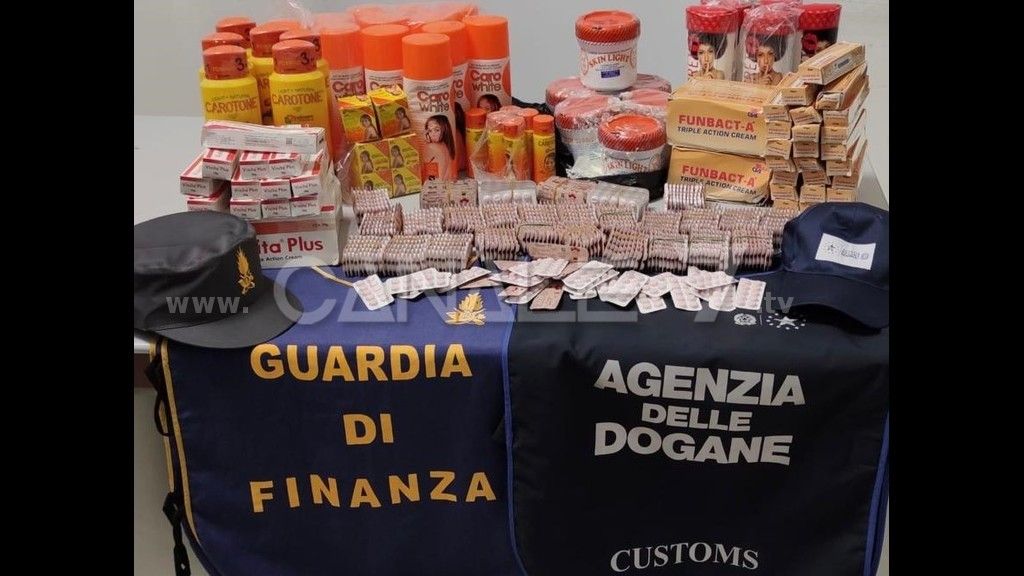 I Finanzieri del II Gruppo Bari, unitamente ai funzionari dell’Agenzia delle Dogane e Monopoli di Bari, nell’ambito delle attività di contrasto ai traffici illeciti effettuate presso l’aeroporto di Bari, hanno portato a termine un’importante operazione di sequestro di prodotti dannosi alla salute. Nello specifico, un attento controllo radiogeno tramite l’apparecchiatura scanner in dotazione all’ufficio doganale effettuato sul bagaglio di un viaggiatore nigeriano proveniente da Addis Abeba (Etiopia) faceva emergere dubbi sul suo contenuto e la conseguente ispezione fisica permetteva di rinvenire migliaia di farmaci e prodotti cosmetici la cui introduzione e commercializzazione nel territorio dello Stato è vietata. Trattasi, in particolare di 41 flaconi di creme sbiancanti contenenti idrochinone (sostanza vietata nei prodotti cosmetici), 3010 compresse di un potente analgesico ad azione centrale, oltre a 36 creme facciali aventi come principio attivo un potente glucocorticoide di sintesi. I reati contestati vanno dalla detenzione di prodotti cosmetici dannosi per la salute umana all’importazione di farmaci da Paesi terzi senza opportuna autorizzazione. Il passeggero è stato denunciato all’Autorità Giudiziaria.